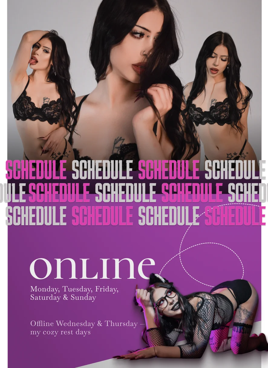 아헤가오, 미스트레스(여주인), 음란한 대화, 하이힐, 가죽, 라텍스, 나일론, 섹스 기구, 페이스씨팅, 스트립쇼, 굴욕, 풋 페티시, 스팽킹, 자위행위 지침, 젖치기, 자지 평점, 트월킹, 오일 쇼, 에로틱 댄스, 카멜토우, 오르가즘, 상의탈의, 니플 기구, 플래싱, 치마속, 롤플레이